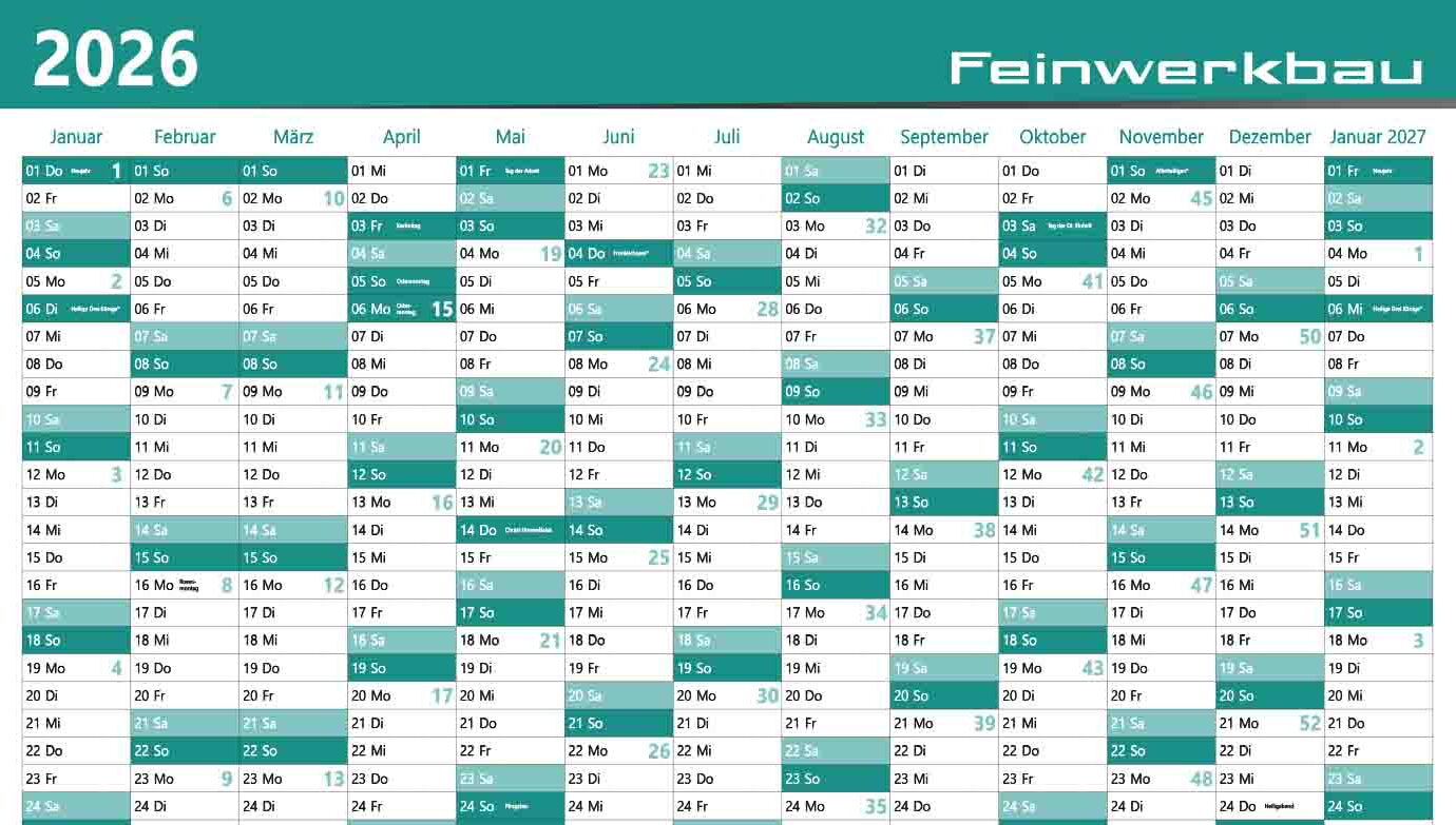 Bestellen Sie jetzt den praktischen Wandkalender für das Jahr 2026 von Feinwerkbau.